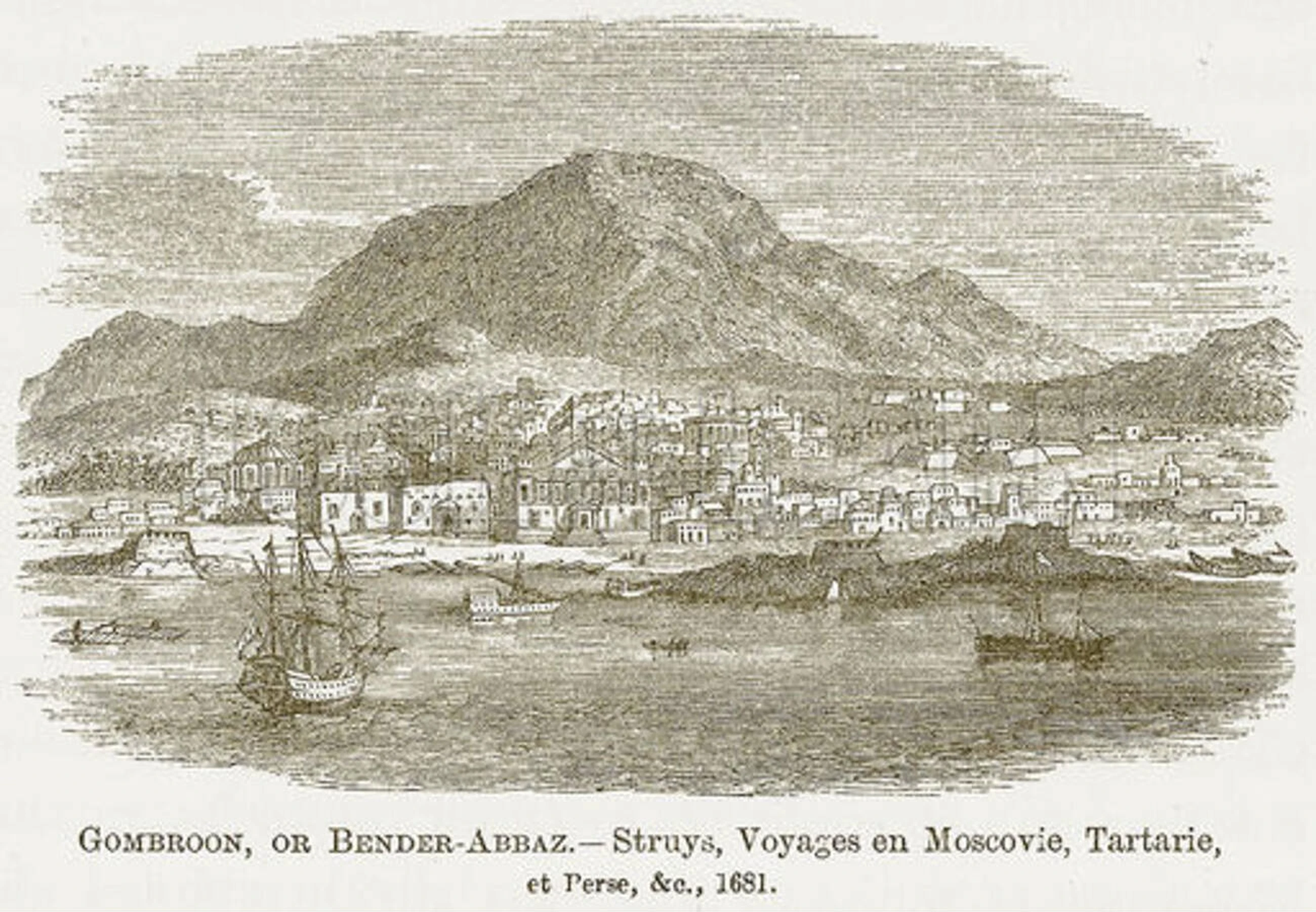 دوره هلندیها و انگلیسیها: پس از پرتغالیها، هلندیها و انگلیسیها برای کنترل تجارت خلیجفارس رقابت کردند. هلندیها پایگاه تجاری در گمبرون تأسیس کردند و از آن برای صادرات ابریشم و دیگر کالاها استفاده نمودند. ژان استروس، جهانگرد هلندی، در کتاب خود «سفرهای استروس» ۱۶۸۱ به توصیف گمبرون پرداخته و جزئیاتی از فعالیتهای تجاری، زندگی روزمره و اهمیت استراتژیک این بندر ارائه کرده است. تصاویر موجود در کتاب «تاریخ جامع هند» نوشته هنری بوریج ۱۸۶۲ نیز به این دوره اشاره دارند و مناظری از بندر و فعالیتهای تجاری آن را به تصویر میکشند.